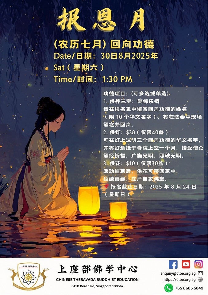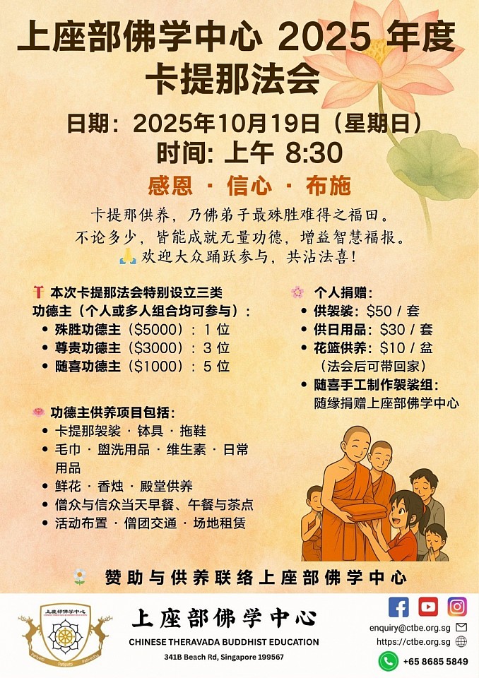 上座部中文佛学中心为弘扬佛陀正法,培育正念与慈悲心,本中心(或网站)定期举办多种佛法与修行活动。